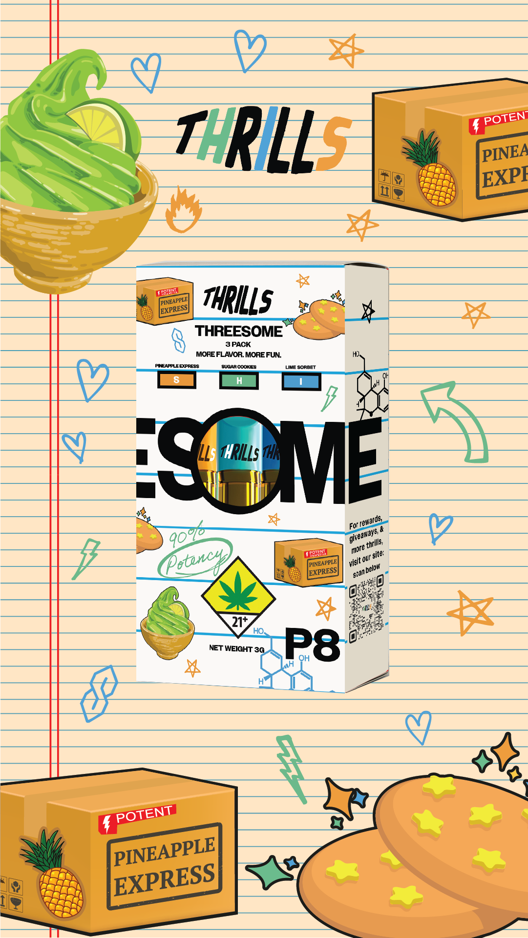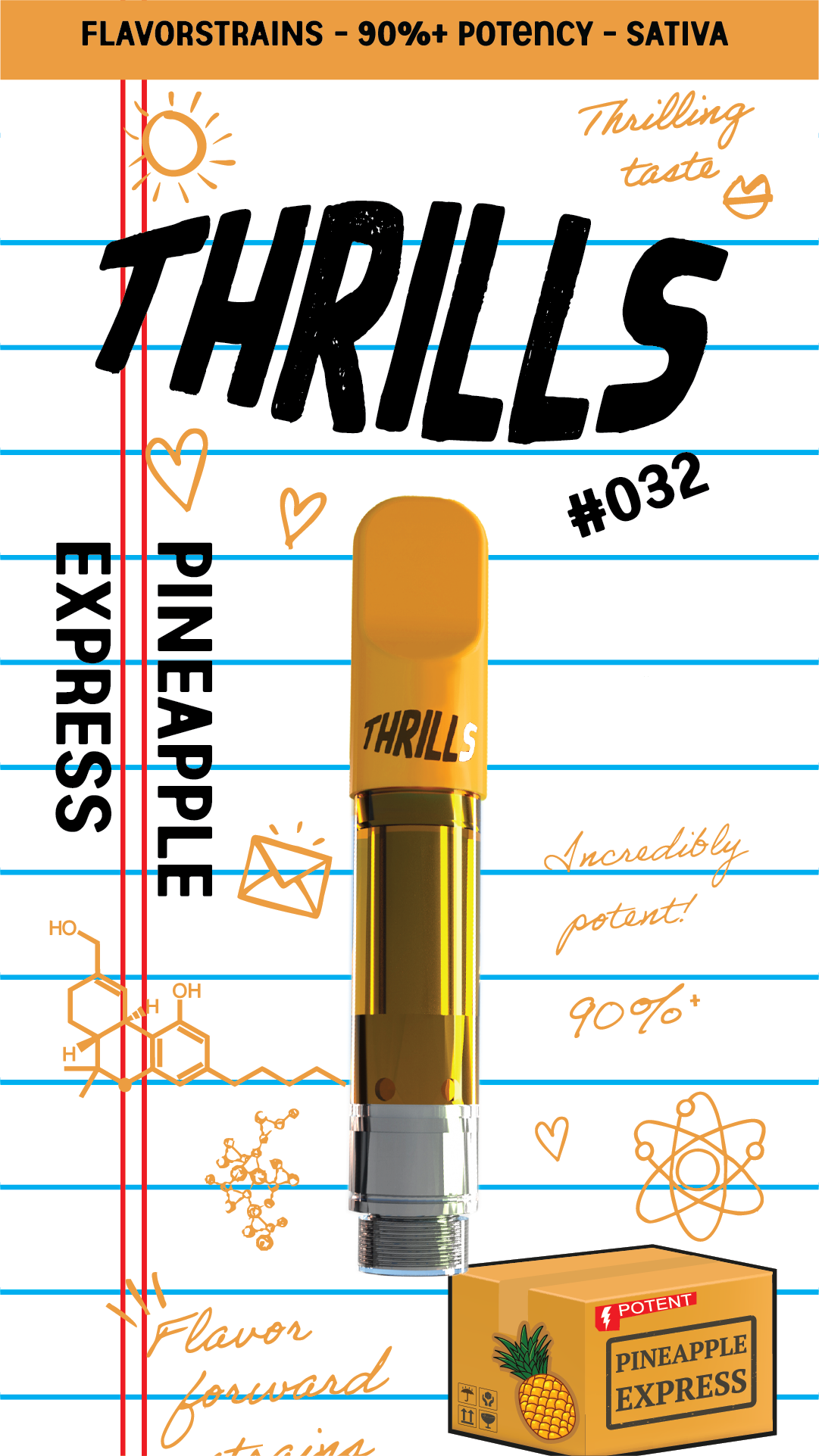 Thrills products are THRILLSSTRAIN-specific, meaning that each product has a profile that relates to a strain, and its features. Some THRILLSSTRAINS are Indica, some Sativa and others Hybrid.